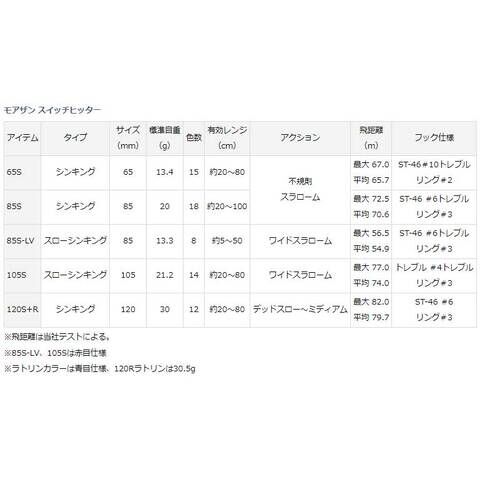 - フック仕様:ST-46#6トレブル、リング#3