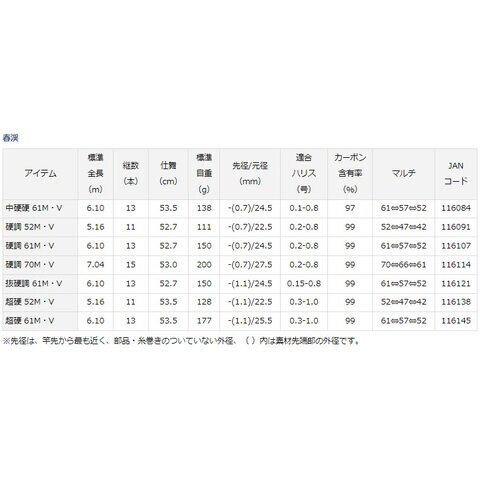 “春渓” は、ベテランの渓流師、これからチャンレンジする入門者、そして新たな調子や長さの1本として、幅広い層の渓流師から支持されるダイワを代表する渓流竿である。