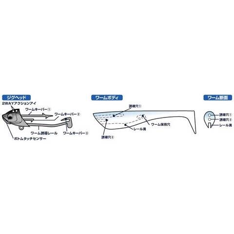 誘導穴・誘導溝付きワームボディ採用によりワンタッチでボディ交換が可能。朝夕マズメの貴重なチャンスを逃さない。