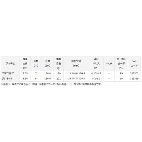 ■20cm~25cmクラスのアマゴを軽快に抜き上げる「アマゴ抜 75」に、サツキマスをメインに尺アマゴや本流ヤマメにも対応するタメ性能と粘りを備えた「サツキ 85」の2種類のアイテム構成。