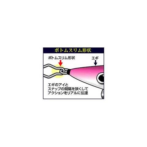 エギのアイとスナップの間隔を狭くし、ラインを通じて来るアクションをリアルにエギに伝えるボトムスリム形状。