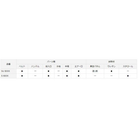 - 標準装備:ベルト、投入口、中箱、エアー口