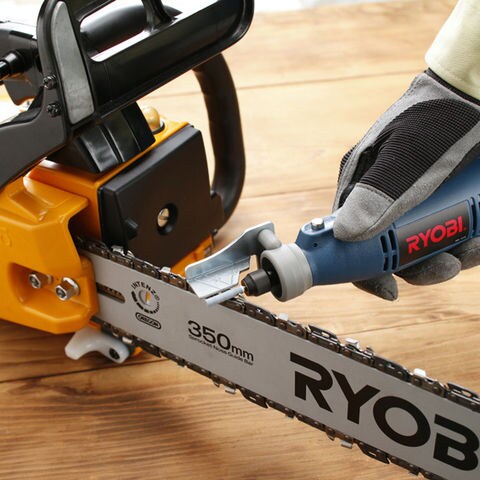 ◆面倒なソーチェンの研磨が簡単にできる電動チェンソーシャプナー。