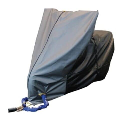 従来のカバーはスソ部分を絞っているため、被せるときにミラー・ステップ・マフラーに引っかかってしまい取り付けが大変です。バイクスーツなら両サイドから覆いかぶせる感じで従来カバーのようなトラブルがおこりません。ファスナーは止水ファスナーを使用しファスナー部からの水の浸入をふせぎます。