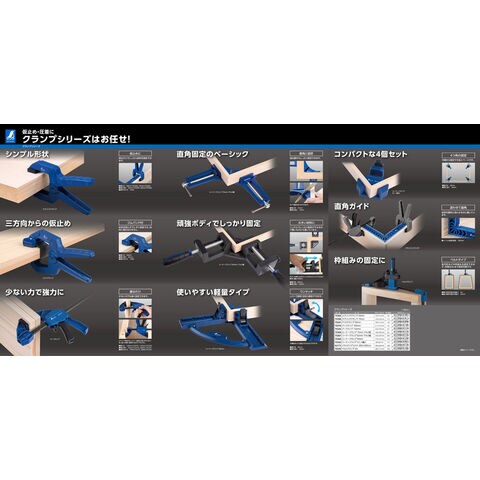 ◆別売のクランプと組み合わせて、材料を固定する際に直角を確認できます。