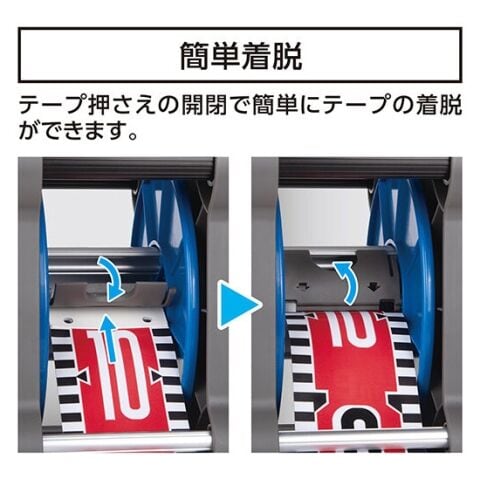 テープ押さえの開閉で簡単にテープの着脱ができます。