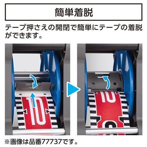 テープ押さえの開閉で簡単にテープの着脱ができます。