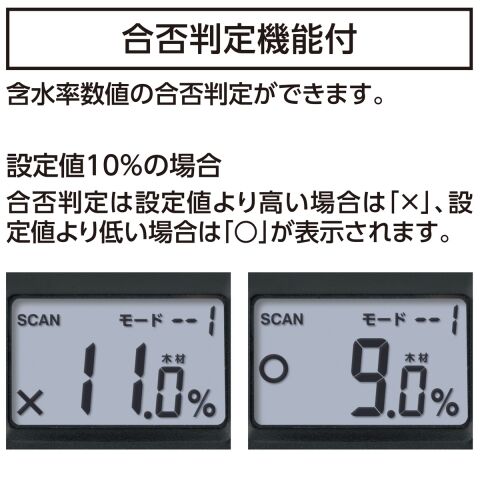 含水率数値の合否判定ができます。