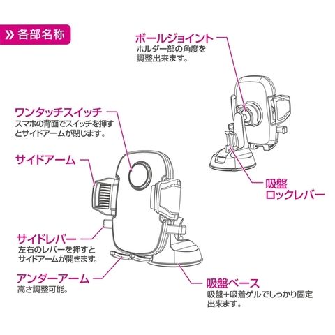 スマホを押し当てるだけのワンタッチホールド式スマホホルダー
