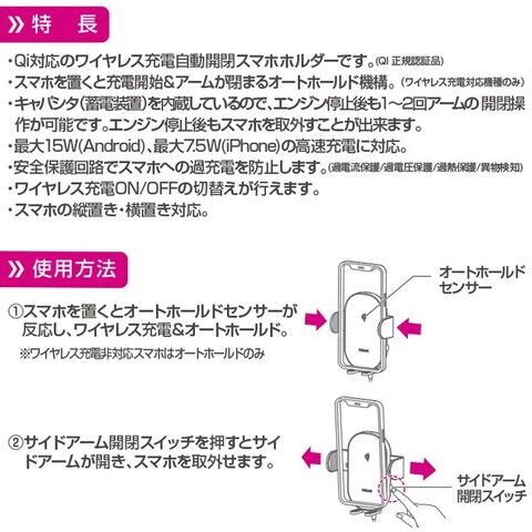 ◆Qi対応のワイヤレス充電自動開閉スマホホルダーです。(Qi 正規認証品)