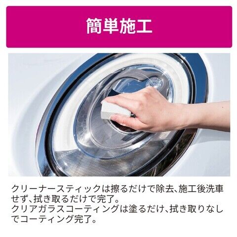 クリーナースティックは擦るだけで除去、施工後洗車せず、拭き取るだけで完了。