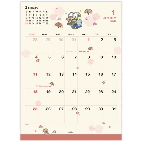 日本ホールマーク 2026年 ミニオンズ ボブ&ティム 壁掛け二つ折りカレンダー (大) 845384 【返品種別A】
