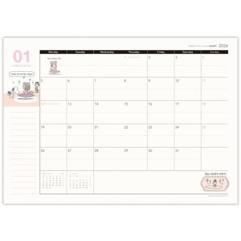 ◆シンプルなカラーとデザインで、性別や年代を問わず使いやすいスヌーピーのダイアリーです。