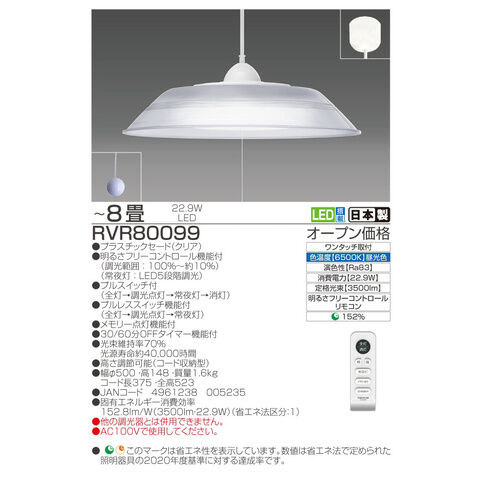 タキズミ 6畳~8畳用 LEDペンダント【コード吊】(昼光色) TAKIZUMI RVR80099 【返品種別A】