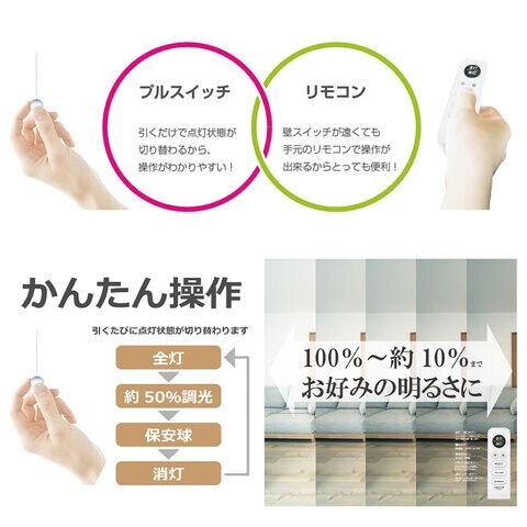 (プルスイッチ:全灯→調光点灯→常夜灯→消灯)