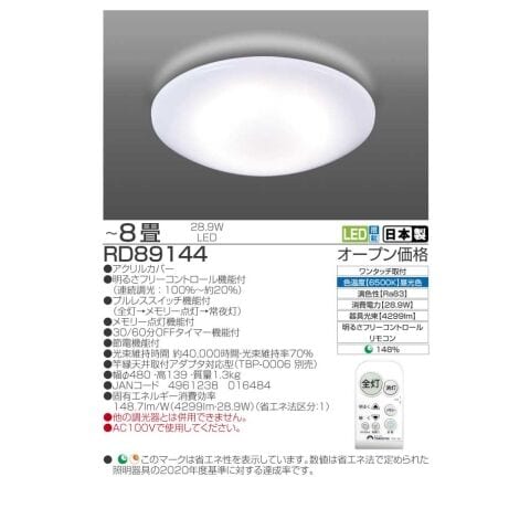 タキズミ 6畳~8畳用 LEDシーリングライト【カチット式】 TAKIZUMI RD89144 【返品種別A】