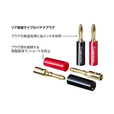 φ4.0~4.5mmのバナナジャックに対応。スピーカーとの接続が安定するため、音源が持つ本来の音質を損なわずに楽しむことができます。