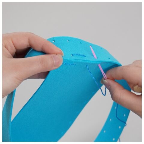 ◆型抜き済みフェルトとプラスチック製の太い針で、簡単・安全にバッグ作りを体験! 作ったあとは小物を入れて実際に使用することも可能です。