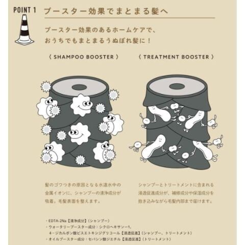 ■成分:水、セテアリルアルコール、アモジメチコン、ジメチコン、加水分解ケラチン(カシミヤヤギ)、加水分解野菜タンパク、フクロフノリエキス、マカデミア種子油、メドウフォーム-δ-ラクトン、レブリン酸、PCA-Na、アルギニン、アスパラギン酸、PCA、グリシン、アラニン、セリン、バリン、イソロイシン、トレオニン、プロリン、ヒスチジン、フェニルアラニン、ラウロイルグルタミン酸ジ(フィトステリル/オクチルドデシル)、シクロヘキサン-1,4-ジカルボン酸ビスエトキシジグリコール、加水分解ヒアルロン酸、セバシン酸ジエチル、ジヒドロキシプロピルアルギニンHCl、加水分解コンキオリンタンパク、グリセリン、エーデルワイス花/葉エキス、酒粕エキス、トウミツ、ココイルアルギニンエチルPCA、EDTA-2Na、BG、ジココジモニウムクロリド、ベヘントリモニウムクロリド、ステアルトリモニウムクロリド、PEG-90M、乳酸Na、乳酸、トコフェロール、DPG、イソプロパノール、エタノール、カラメル、フェノキシエタノール、安息香酸Na、香料