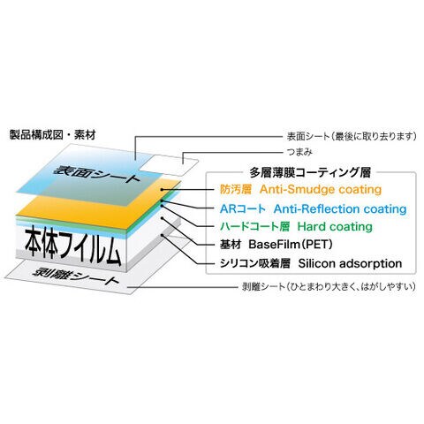 クラス最高水準(鉛筆硬度3H)を実現したハードコート加工が、キズから液晶画面を守ります。