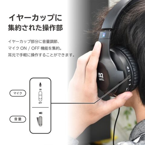 イヤーカップ部分に音量調節、マイクON / OFF機能を集約。