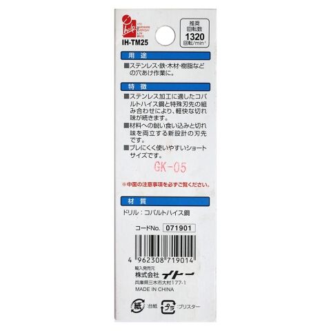 - 適応工具:ボール盤・電動ドリル・充電式ドリルドライバー・充電式インパクトドライバー