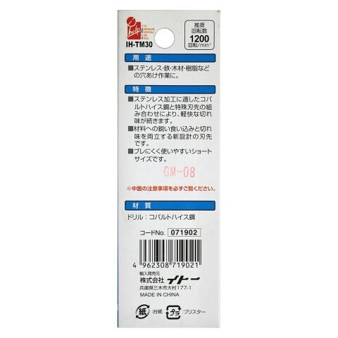 - 適応工具:ボール盤・電動ドリル・充電式ドリルドライバー・充電式インパクトドライバー