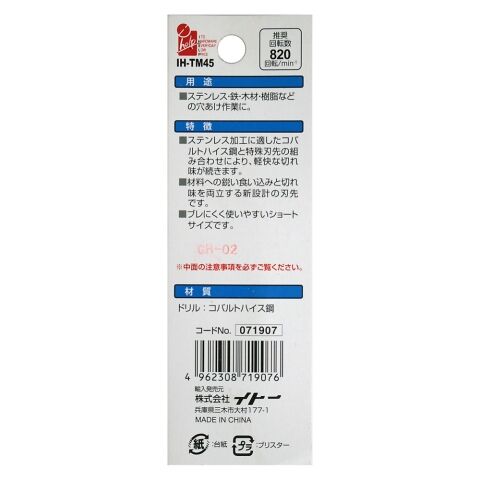 イトー ステンショートドリル 4.5mm #071907 【返品種別B】
