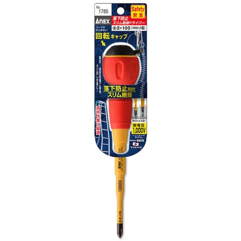 アネックス(ANEX) 落下防止スリム絶縁プラスドライバー(+2×100) 兼古製作所 アネックスツール 1785-2-100 【返品種別B】