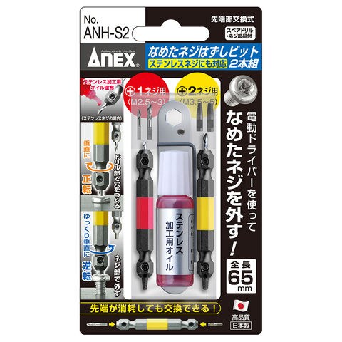 アネックス(ANEX) なめたネジはずしビット ステンレスネジ対応 2本組(M2.5~3.0/M3.5~5.0ネジ対応/65mm) 兼古製作所 アネックスツール ANH-S2 【返品種別B】