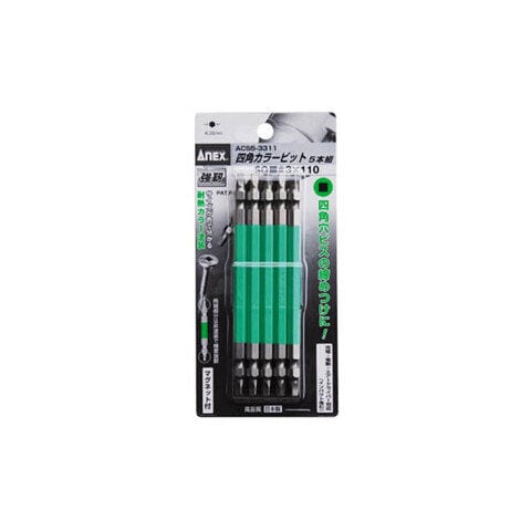 アネックス(ANEX) 四角カラービット5本組 SQ3×全長110mm(緑) 兼古製作所 アネックスツール ACS53311 【返品種別B】