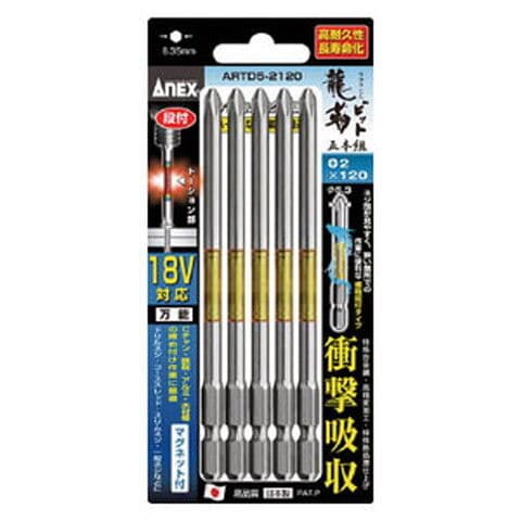 アネックス(ANEX) 龍靭ビット 5本組 段付 +2×全長65mm 兼古製作所 アネックスツール ARTD52065 【返品種別B】