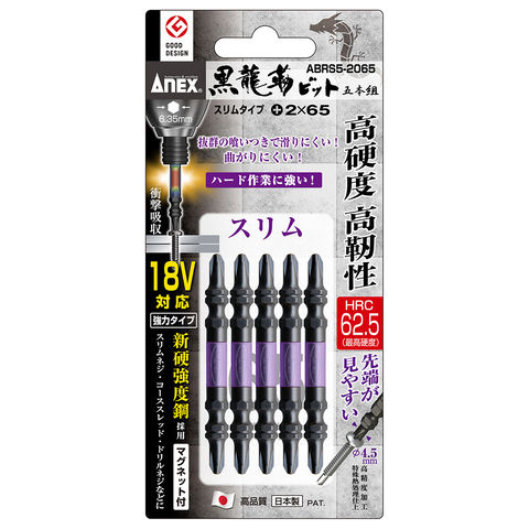 アネックス(ANEX) 黒龍靭ビット スリムタイプ/強力タイプ(+2×65、両頭5本組) 兼古製作所 アネックスツール ABRS5-2065 【返品種別B】