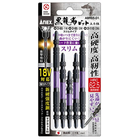 アネックス(ANEX) 黒龍靭ビット スリムタイプ/強力タイプ(両頭プラスビット3種/5本組み) 兼古製作所 アネックスツール ABRS5-01 【返品種別B】