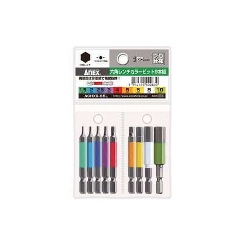 アネックス(ANEX) 六角レンチカラービット9本組 全長65mm 兼古製作所 アネックスツール ACHX9-65L 【返品種別B】