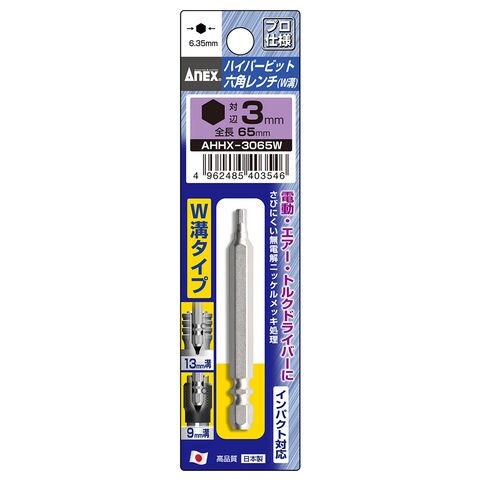アネックス(ANEX) ハイパービット六角レンチ W溝タイプ(H3.0×65) 兼古製作所 アネックスツール AHHX-3065W 【返品種別B】