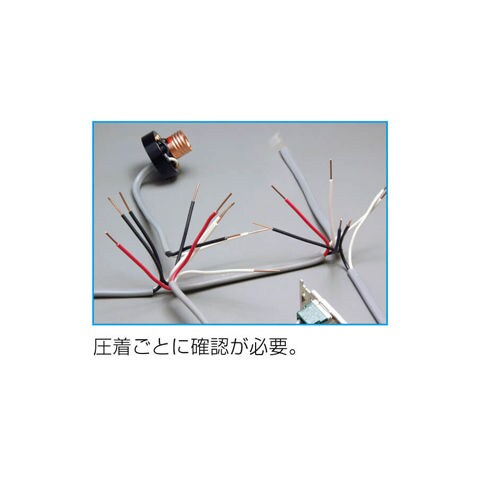 ◆複数の電線を接続するとき、合格クリップを使用し電線をまとめておくと、圧着作業前に接続の事前確認ができ、誤接続を防ぐことができます。