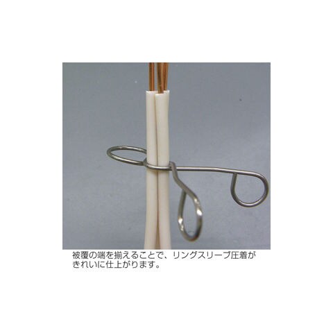 ◆リングスリーブを使用し圧着工具を用いて接続を行う際も、芯線被覆の端を揃えた状態を保持できるので、慣れない方でも素早く、きれいに圧着作業を行うことができます。