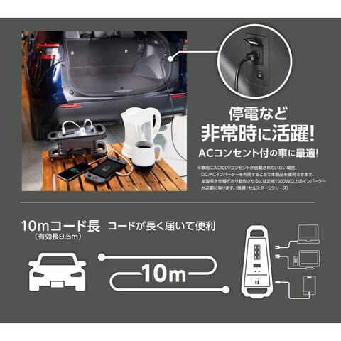 ◆車にACコンセントがあれば接続カンタン!
