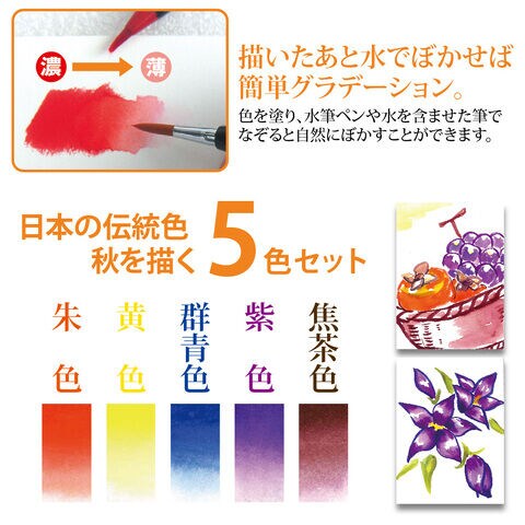 あかしや 水彩毛筆「彩」秋を描く5色セット カラー筆ペン CA200/5VC 【返品種別A】のレビュー