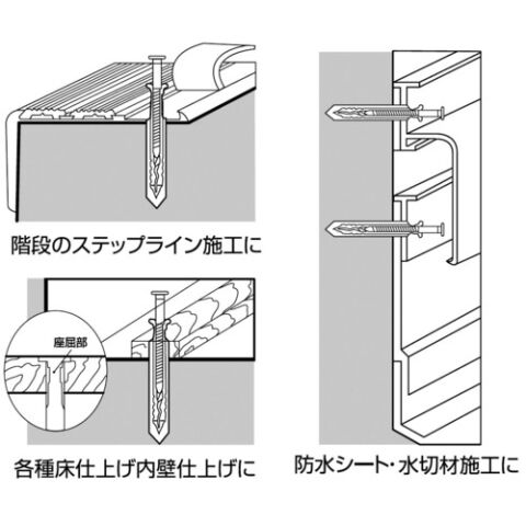 ◆ALC・コンクリートへの階段のステップライン施工やカーテンレールの取り付け、ガス管・水道管の壁面取り付けに。