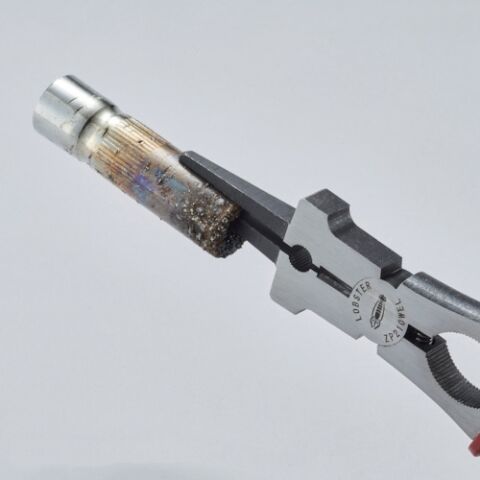 ◆1.ワイヤー引き出し(ラジオペンチ機能)、2.ワイヤー切断、3.ノズル内外部のスパッタ除去、4.ノズル先端のスパッタ除去、5.スパッタを落とすためのハンマー機能、6.チップの脱着、7.ノズルの脱着、8.絶縁筒の脱着。