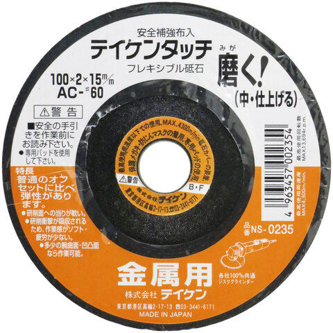 テイケン フレキシブル砥石 金属用 中仕上 100mm AC #60 00235 【返品種別B】