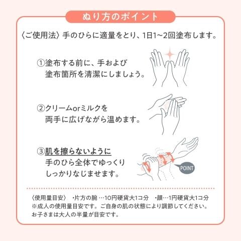 ●手のひらに適量をとり、1日1~2回塗布します。