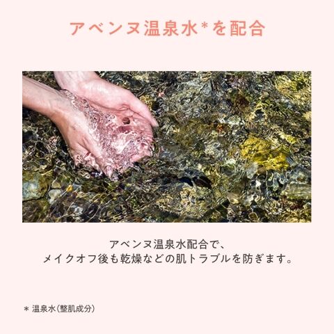 ◆アベンヌ温泉水*配合で、メイクオフ後も乾燥などの肌トラブルを防ぎます。