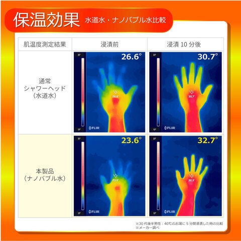 ナノバブルを含んだ温水は浸透率が高く、温水がお肌の奥まで浸透するので身体が温まりやすくなります。