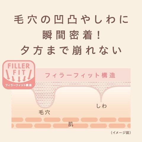 新たにフィラーフィット構造を採用。毛穴の凹凸やしわに素早く入り込み、瞬間密着して夕方まで崩れません。