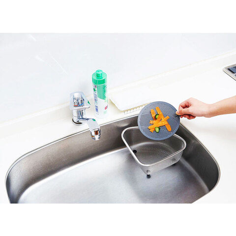 ◆キッチンシンクのごみカゴの上に置くだけで、片手でパッとお掃除できる流し用ゴミ受け。