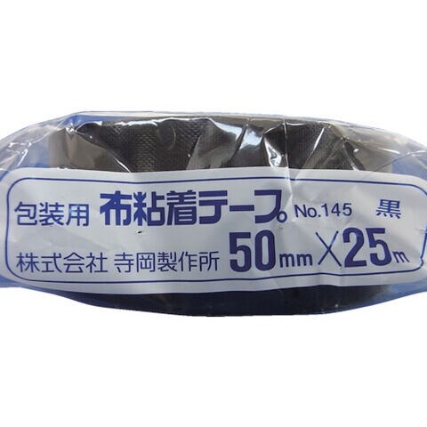 寺岡製作所 布粘着テープ 幅50mm×長さ25m(黒)1巻 TERAOKA No.145 カラーオリーブテープ 145 BK-50X25 【返品種別B】