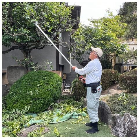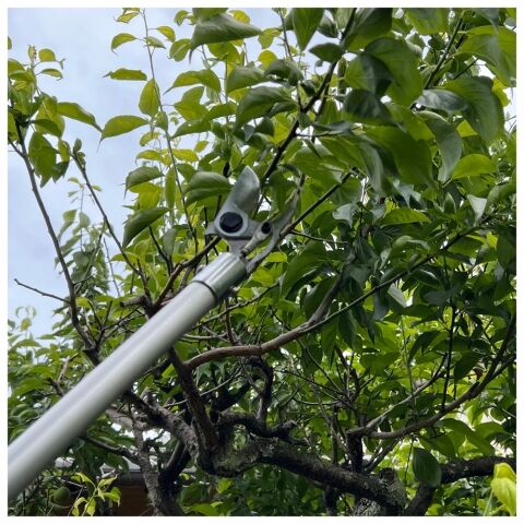 ・高所の枝を楽に剪定できる充電式高枝鋏。